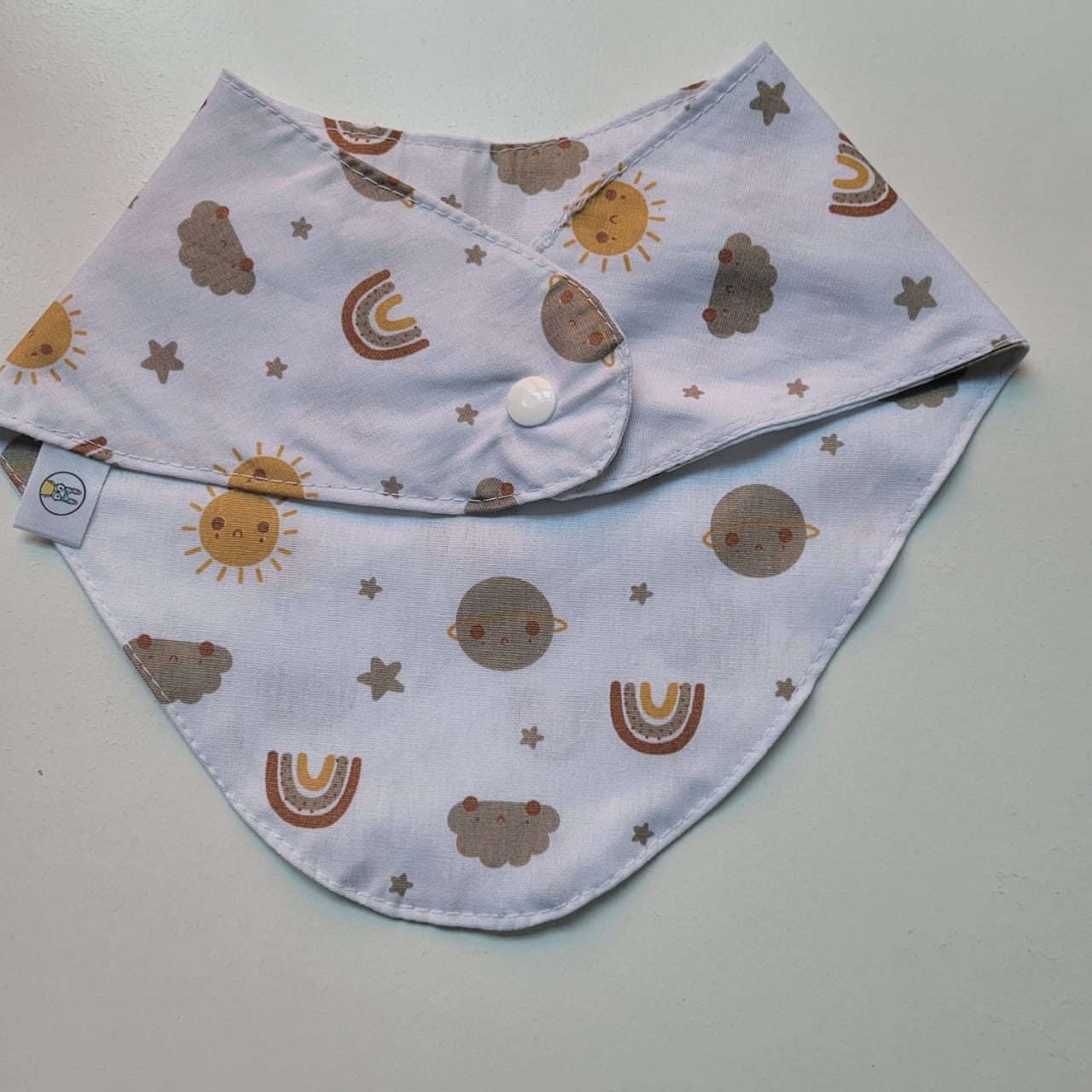 O seu diferencial é que além de proteger a roupinha do baby ele é um belo acessório.