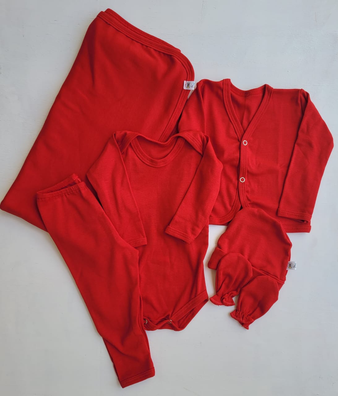 Este kit todo em malha, 100% algodão, é composto por 6 peças essenciais para o bebê!